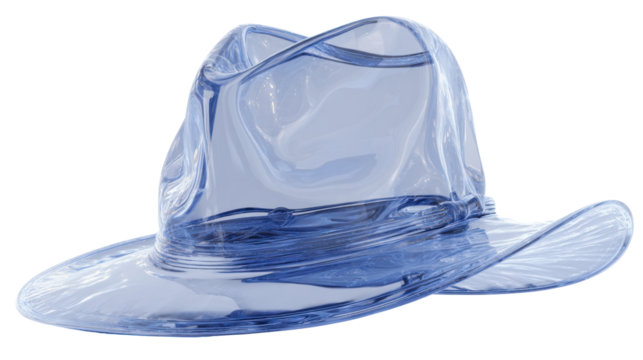 Glass cowboy hat made from flowing water creating a transparent concept on an alpha background