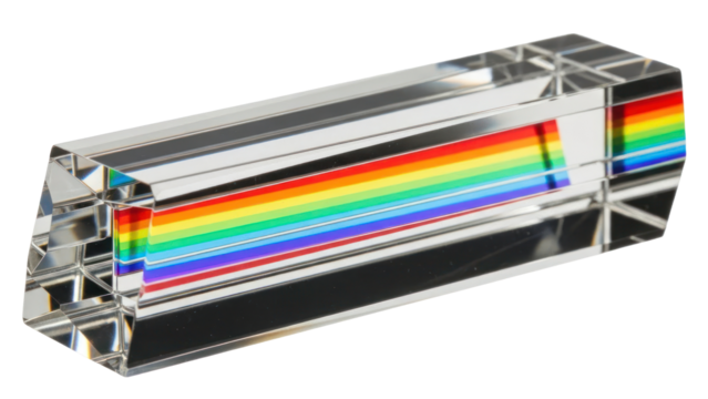 Prism cube refracting light into rainbow colors isolated on transparent background
