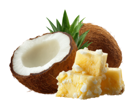 Coconut and butter chunks tropical food fresh isolated on transparent background