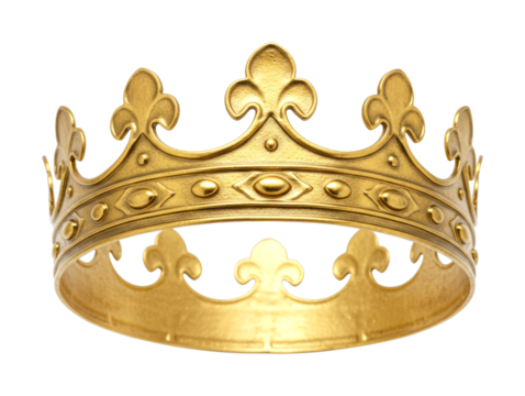 Majestic golden crown, symbolizing royalty and power, stands as a regal emblem of authority with intricate details and a rich, textured finish.