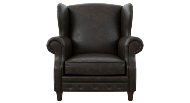 Detailed Realistic 3D Render of a Brown Leather Wingback Armchair on Transparent Background