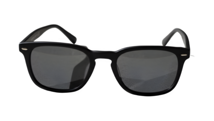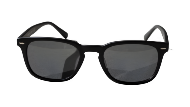 Classic matte black wayfarer sunglasses with dark polarized lenses, isolated subject for catalog