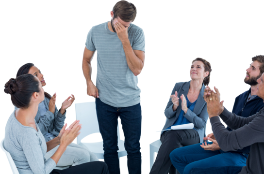 Diverse group of friends smiling and giving thumbs up on transparent background