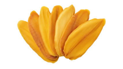 Isolated Dried Mango Pieces, tropical snack fruit, dehydrated exotic treat, no sugar added