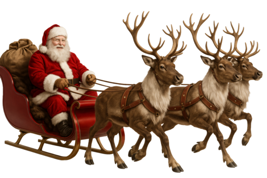 New year 2026 with santa claus and reindeer isolated on transparent background