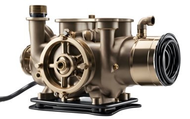 A high-powered water pump with reinforced hoses, isolated on a empty plain background