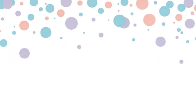 Colorful confetti and bubbles in pastel shades scattered across a transparent background for celebration and party themes