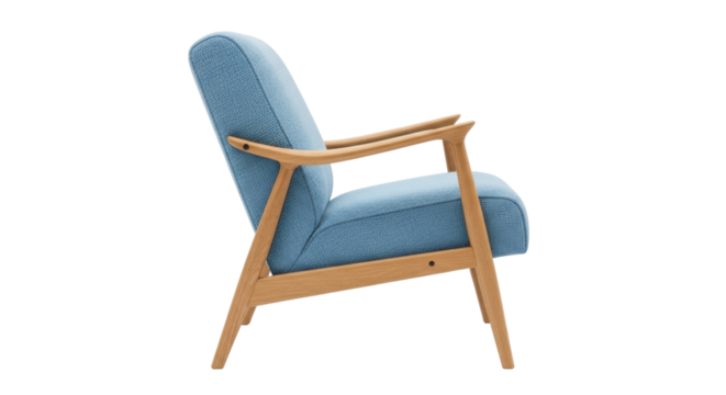 Isolated armchair with light wood frame and blue upholstery modern accent seating item
