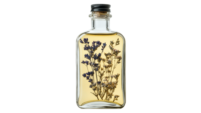 Lavender scented cream in a bowl accompanied by fresh lavender sprigs on a white background on transparent background