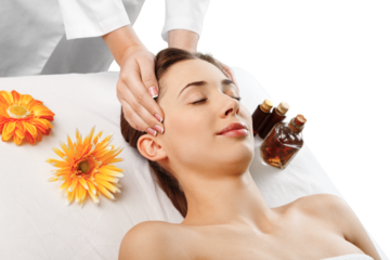 Relaxed young female getting a massage in a spa salon