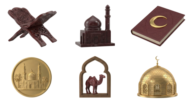 Islamic Books Stacked with Crescent Moon and Star on transparent background