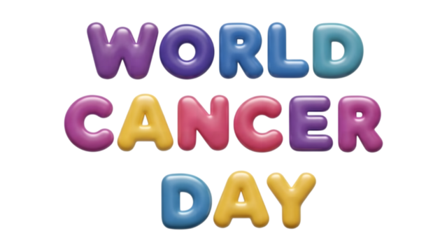 Colorful world cancer day text illustration vibrant letters on transparent background