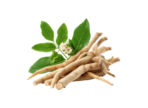 Ashwagandha roots leaves and flowers with intricate details natural, Isolated, Png Transparent Background