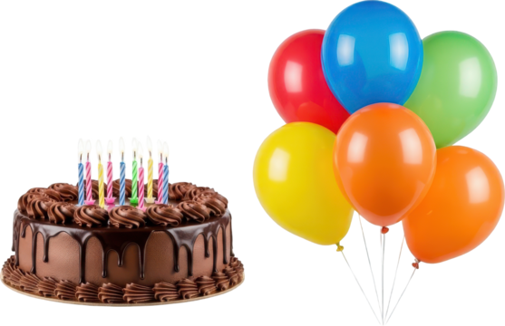 Birthday Cake and Colorful Balloons