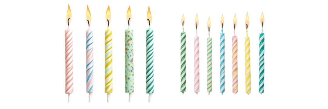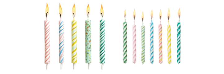 Colorful birthday candles on a transparent background for celebration