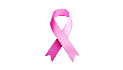 A vibrant pink ribbon, a recognized symbol, set against a stark black background