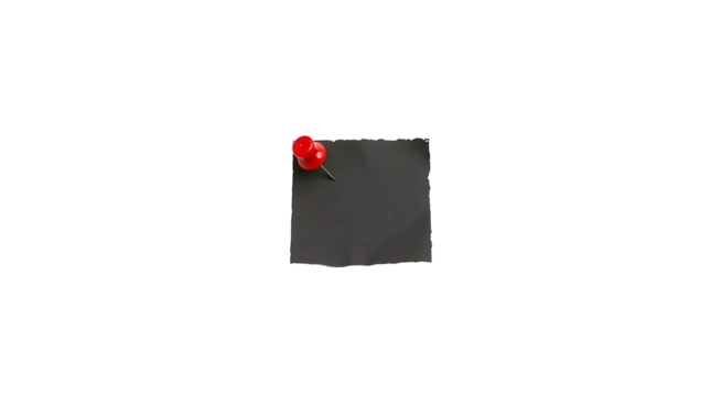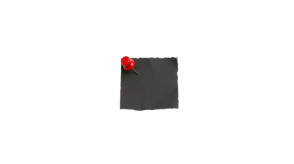 Black  sticky paper  note with red pushpin isolated on transparent background