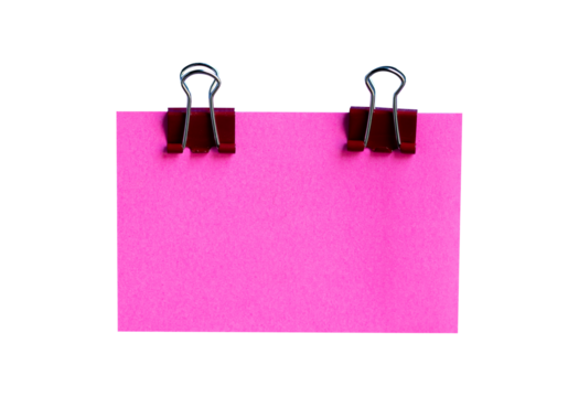 pink sticky note with binder clip on white background isolated