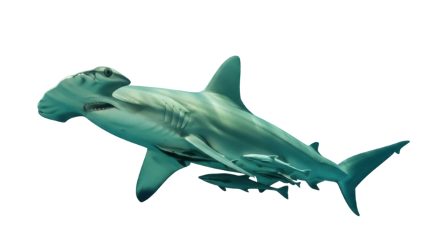 Hammerhead shark isolated on transparent background, marine predator with distinctive head shape for wildlife and ocean conservation themes