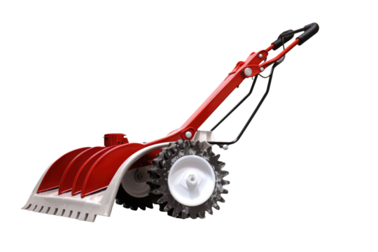 Red skateboard on transparent canvas with blue wheels and black trucks