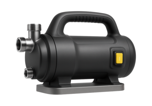 Portable electric drainage pump with a compact design for small water removal tasks in gardens.