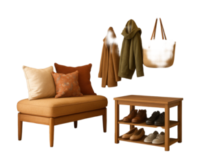 A vestibule with seating, offering a cozy area to remove shoes in a family home.