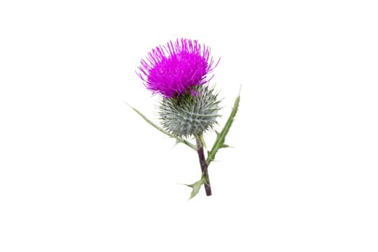 Purple thistle flower isolated transparent png. Cirsium flowering plant,aster family, Asteraceae.