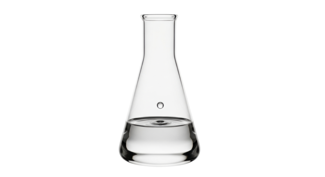Isolated Erlenmeyer flask with liquid sample for experiment and research work in the lab
