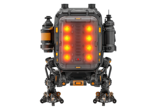 Advanced robotics showcase tech lab digital art futuristic close-up. Isolated on transparent background, png.