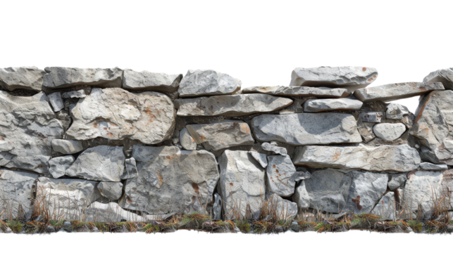 A rustic stone wall showcasing a variety of textured stones stacked together, perfect for architectural and design themes cut out isolated transparent PNG