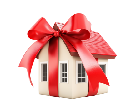 A model of a house wrapped with a gift wrap, real estate, rental investment, house purchase, apartment.