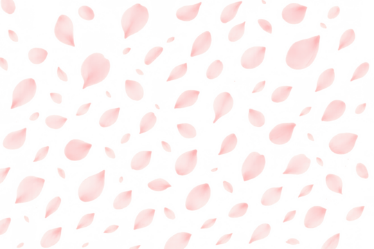 Falling pink cherry blossom petals on transparent background creating seamless floral spring pattern