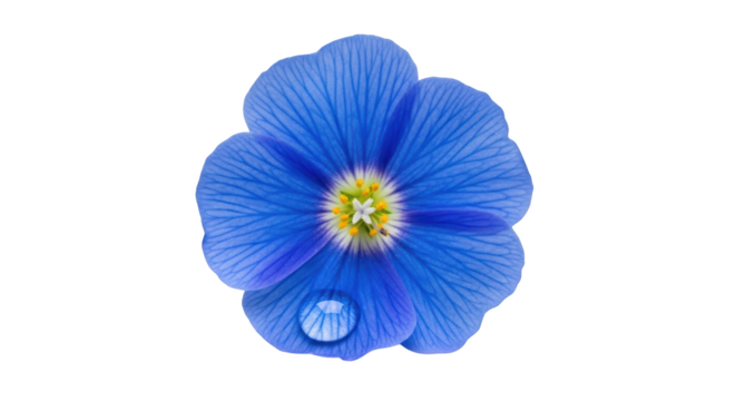 Blue Flax Flower with Dewdrop Macro Photography featuring flower, blue, flax, bloom, blossom high quality realistic