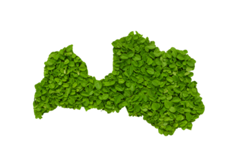 Illustration Of Latvia Map Made Of Green Leaves On Transparent Background