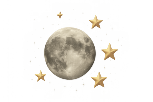 Isolated Illustration Of 3D Yellow Moon With Gold Stars On Transparent Background