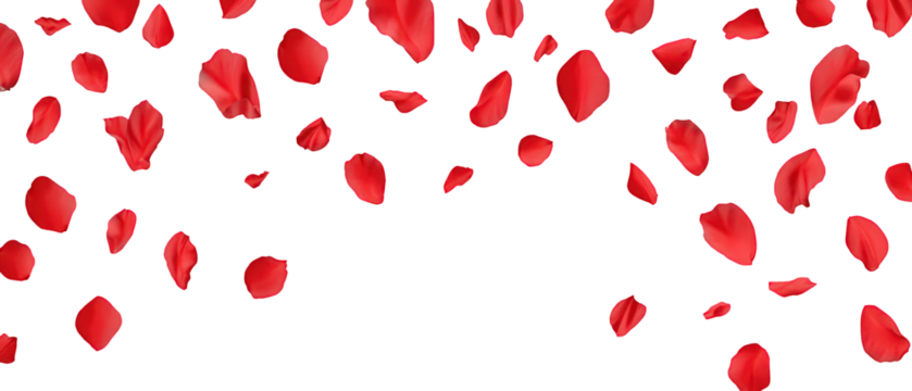 Love valentine background with red petals of hearts on transparent background. Vector banner, postcard, background.The 14th of February. PNG image