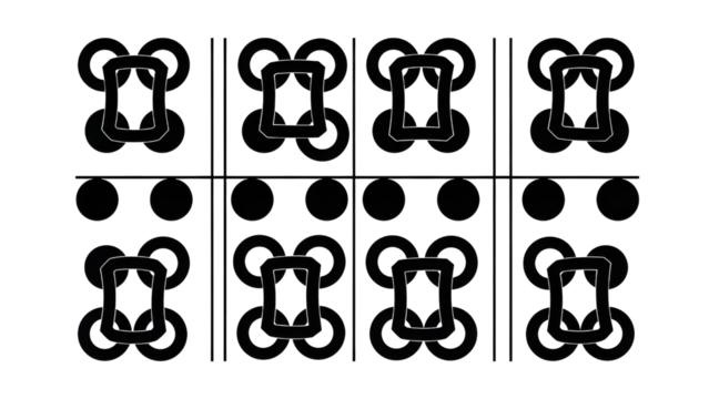 Abstract design with interlocking rectangles and floating circles, isolated on a Transparent background, PNG file.