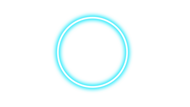 A minimalist abstract design presents a vibrant cyan circle with a white outline.
