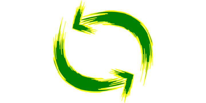 A green circular arrow symbol with a brushstroke effect, representing a refresh or cycle.