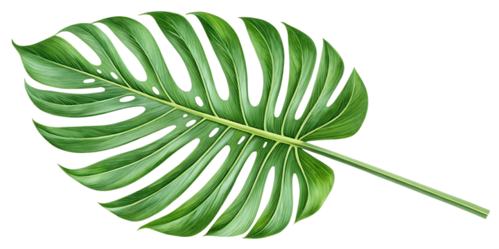 Detailed monstera deliciosa leaf illustration on transparent background for tropical botanical designs and nature inspired artwork