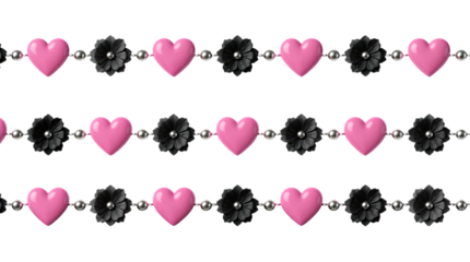 Pink hearts and black flowers beaded garland repeating pattern
