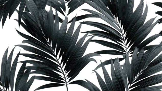 Close-up of lush, stylized foliage against a black background, with repeating natural elements