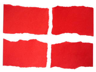 everal pieces of red torn-edge sticky notes isolated on transparent background.