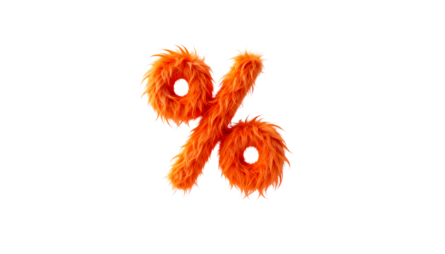 3D Render Wallpaper of a Fluffy Orange Monster Percentage Symbol with Copy Space, Perfect for Modern Design and Festive Concepts