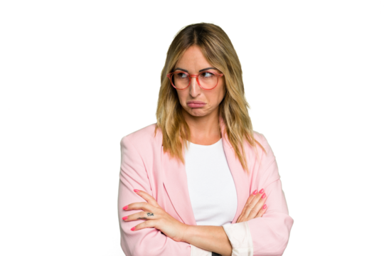 Young caucasian woman isolated on green chroma background tired of a repetitive task.