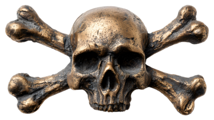 Brass Skull and Crossbones: Detailed Close-up of Antique Pirate Symbol isolated on transparent background