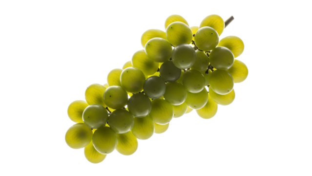 Fresh green grapes, beautifully backlit, showcasing their vibrant translucence against a pristine white background. This cluster represents natural
