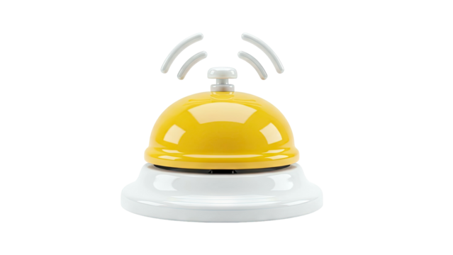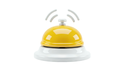 Golden service bell on a white surface isolated on transparent background