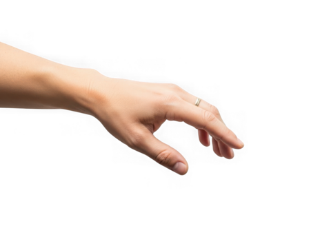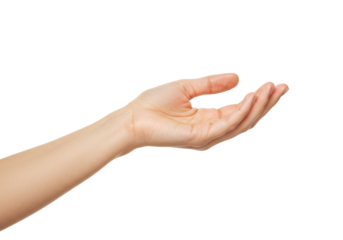 Isolated hand reaching out offering something, elegant open hand gesture with neutral skin tone