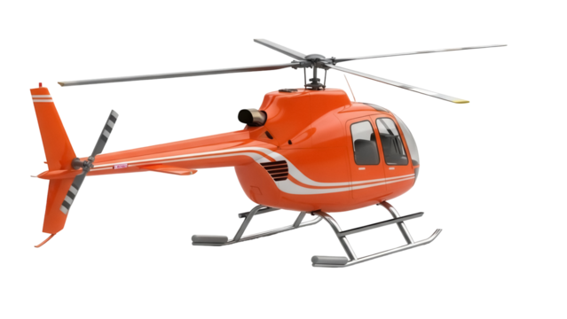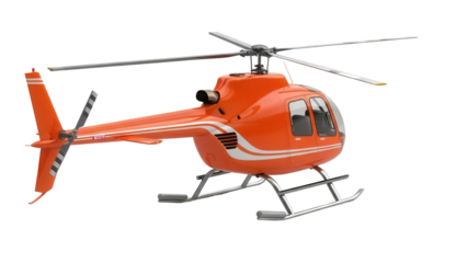 Orange helicopter PNG isolated on transparent background, light aircraft for transportation and travel, air vehicle for rescue and tourism